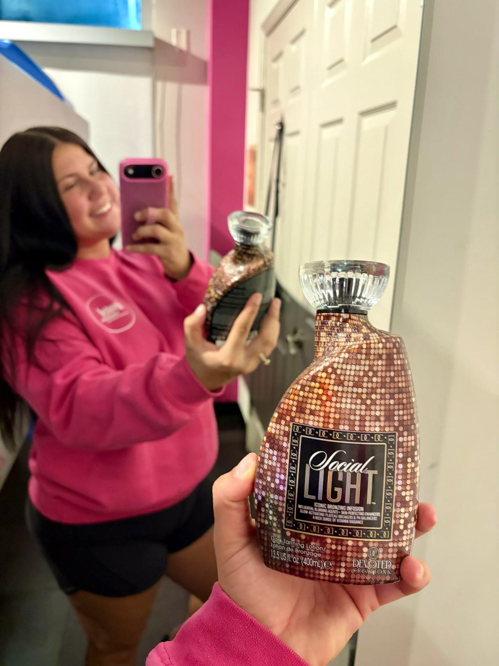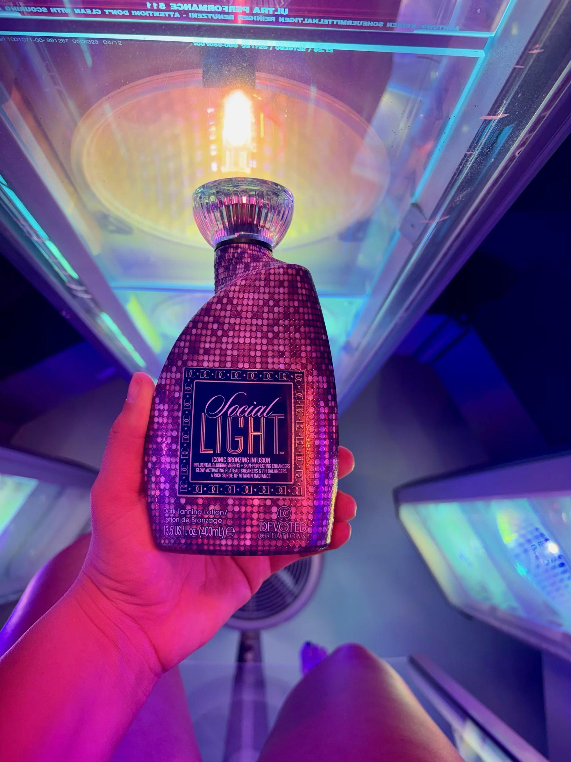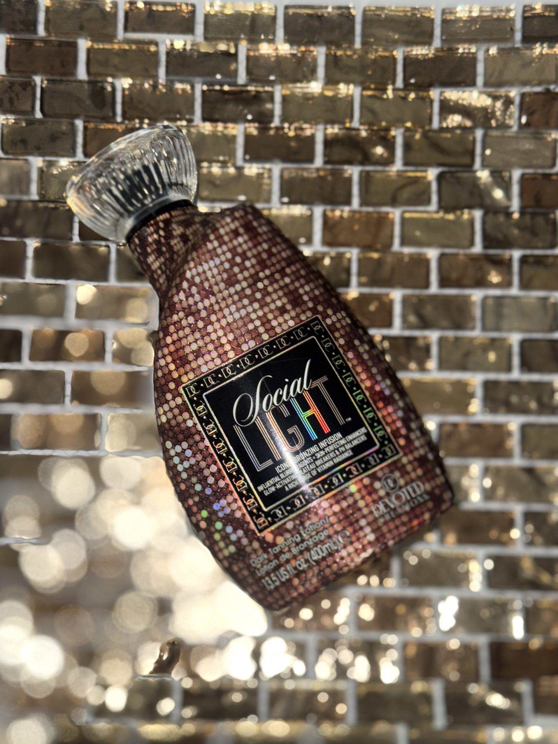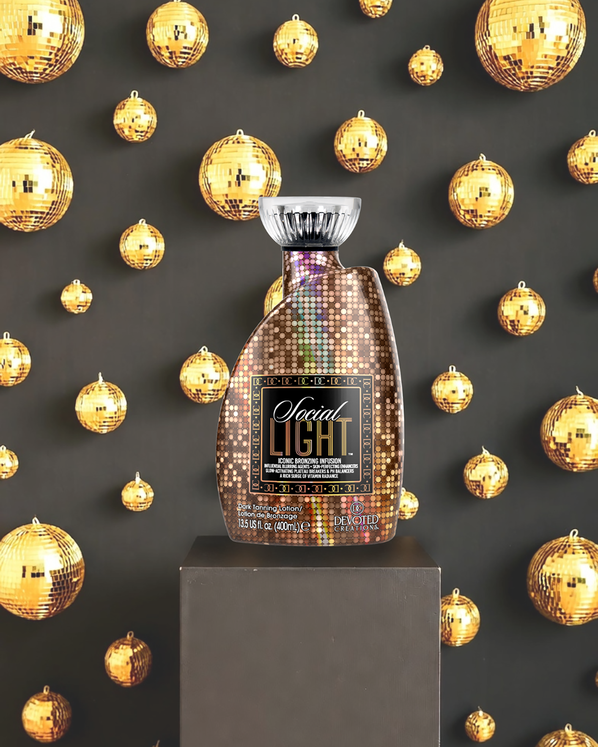When your glow is this good, it’s not just A-list - it’s influential! Social Light™ is the high-profile hydration must-have your skin has been waiting for! A lavish trend-setting fusion of advanced skincare and elite bronzing technologies are designed to leave you glowing in every flash, spotlight, and filter-free moment. This luxe lotion is infused with our exclusive Collagen Banking Complex to help firm, plump, and preserve your skin’s youthful bounce while maintaining a radiant and refined glow. Porcelain Flower, beauty’s most captivating secret, works to brighten and polish for a crystal-clear complexion while an opulent blend of micro gold particles and vogue-worthy Vitamin C - add a luminous boost for that lit-from-within gleam. Polished peptides, elite exosomes, and prominent pH balancers work behind the scenes to keep you smooth, toned, and always camera-ready. Skin this soft, this flawless, and this glowy doesn’t just happen - it’s curated! For head turning results, it’s time to step into the spotlight with Devoted Creations Social Light™.