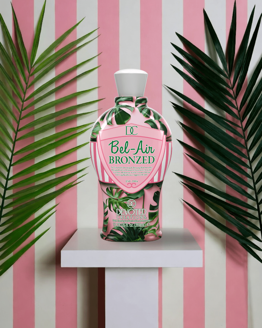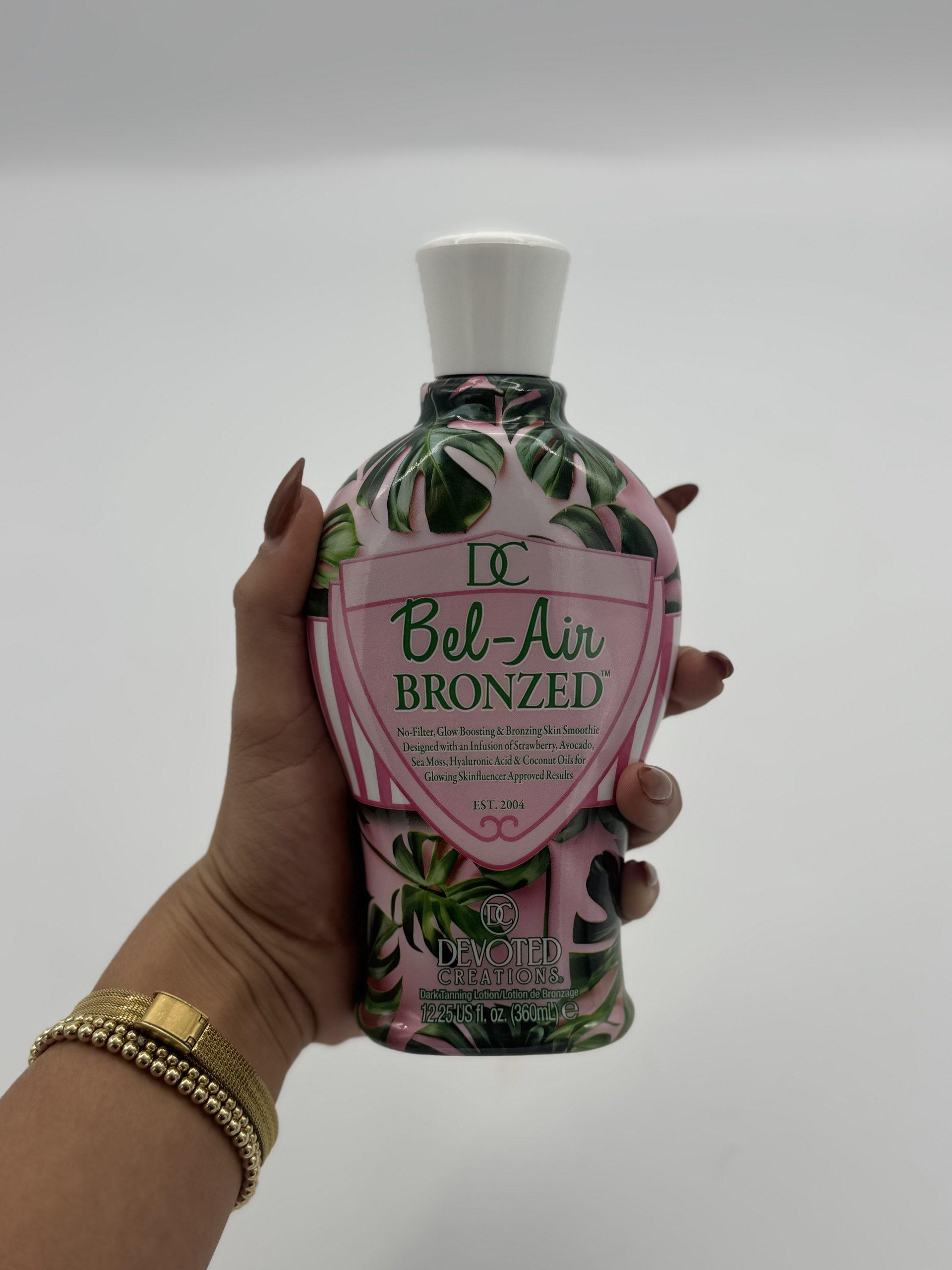 Step into your spotlight with Bel-Air Bronzed™ - your VIP pass to glossed, glowy, paparazzi-proof perfection! This DHA-free bronzing blend delivers rich, radiant color without any streaking or staining, making every session a filter-free, flawless moment. Infused with our signature Glow Glaze Skin Smoothie, featuring sea moss, strawberry, avocado, hyaluronic acid, almond, and coconut, this it-girl elixir nourishes and luminizes for that iconic glow-from-within finish. A Collagen Banking Complex and pHbalancing apple cider vinegar elevate skin to elite status, while crushed diamonds and micro-pearls reflect light for soft, smooth, skinfluencer approved results! No need for a retouch when you’re Bel-Air Bronzed™ - this glow comes camera-ready!