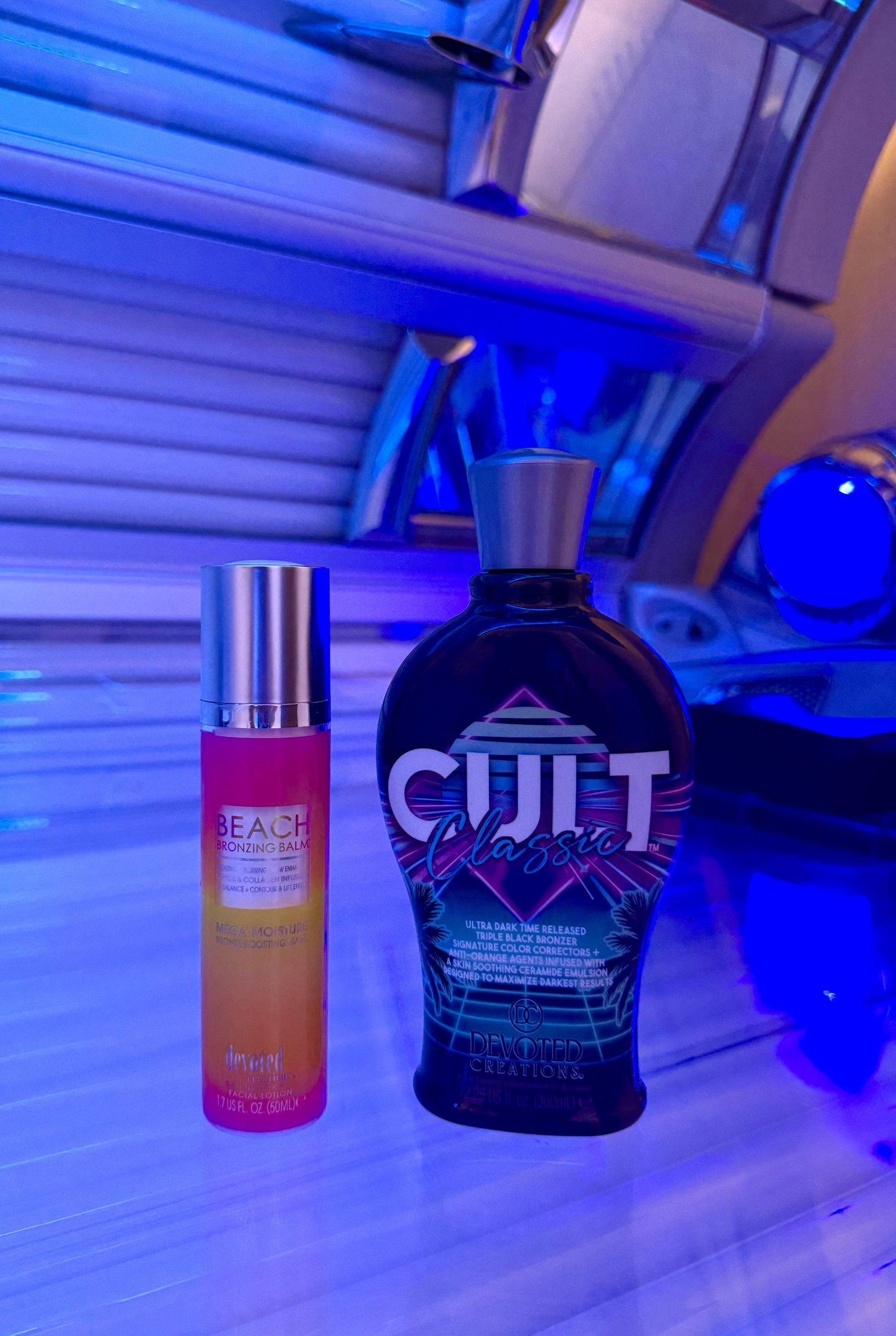 Some things never go out of style - like a flawless tan powered by a Devoted Creations bronzer. Cult Classic™ delivers mega-rich color with a triple bronzing blend of DHA, natural, and cosmetic bronzers, expertly crafted for the deep, ultra-dark results you’ve come to expect from DC. This time-released tanning cocktail is infused with anti-orange color correctors to help balance skin’s undertones and boost bronze brilliance, while ceramides work to hydrate and reinforce the skin’s moisture barrier. Added fan-favorite peptides help smooth and refine, for a skin-perfecting finish after every session. The iconic Kakadu Plum delivers a glow-worthy dose of Vitamin C for the appearance of a brighter, more even-looking complexion, while our signature Anti-Fade Technology helps lock in your ultra-dark color and work overtime to keep your holy grail glow. We all know that trends may fade… but Ultra Rich Cult Classic™ Devoted Creations color? Now that’s timeless.