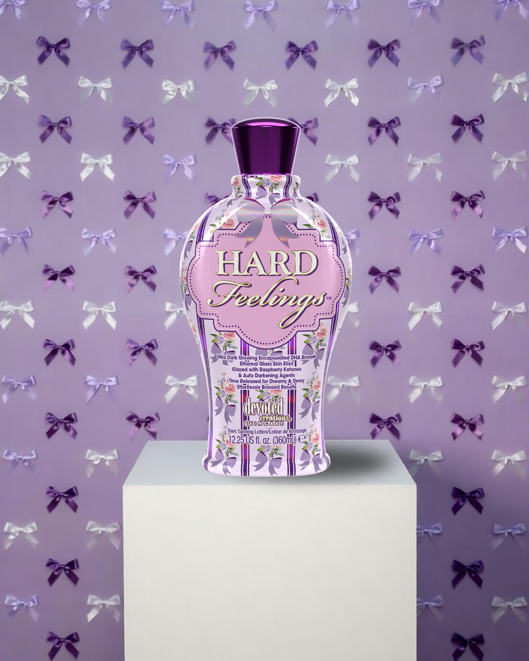Some feelings may be complicated, but your color shouldn’t be! Hard Feelings™ is your best-kept secret for a luxe, swoon-worthy glow. Designed with ultra-rich encapsulated DHA and airy auto-darkening agents, this romantic formula allows raspberry ketones to unveil a plush, velvety bronze result. This feather-light, satin soft blend is infused with glow-boosting Collagen Banking and a dreamy Glass Skin Complex, which work together effortlessly for a flawless, soft-focus radiance. Strawberry and champagne extracts kiss the skin in luxe hydration as sweet as sugar, while Violet Flower and NeuroGlow™ leave behind a dreamy luminosity and ethereal dream. Think of this as your happily ever after – because with Hard Feelings™, the only thing that needs to be dramatic is your color!