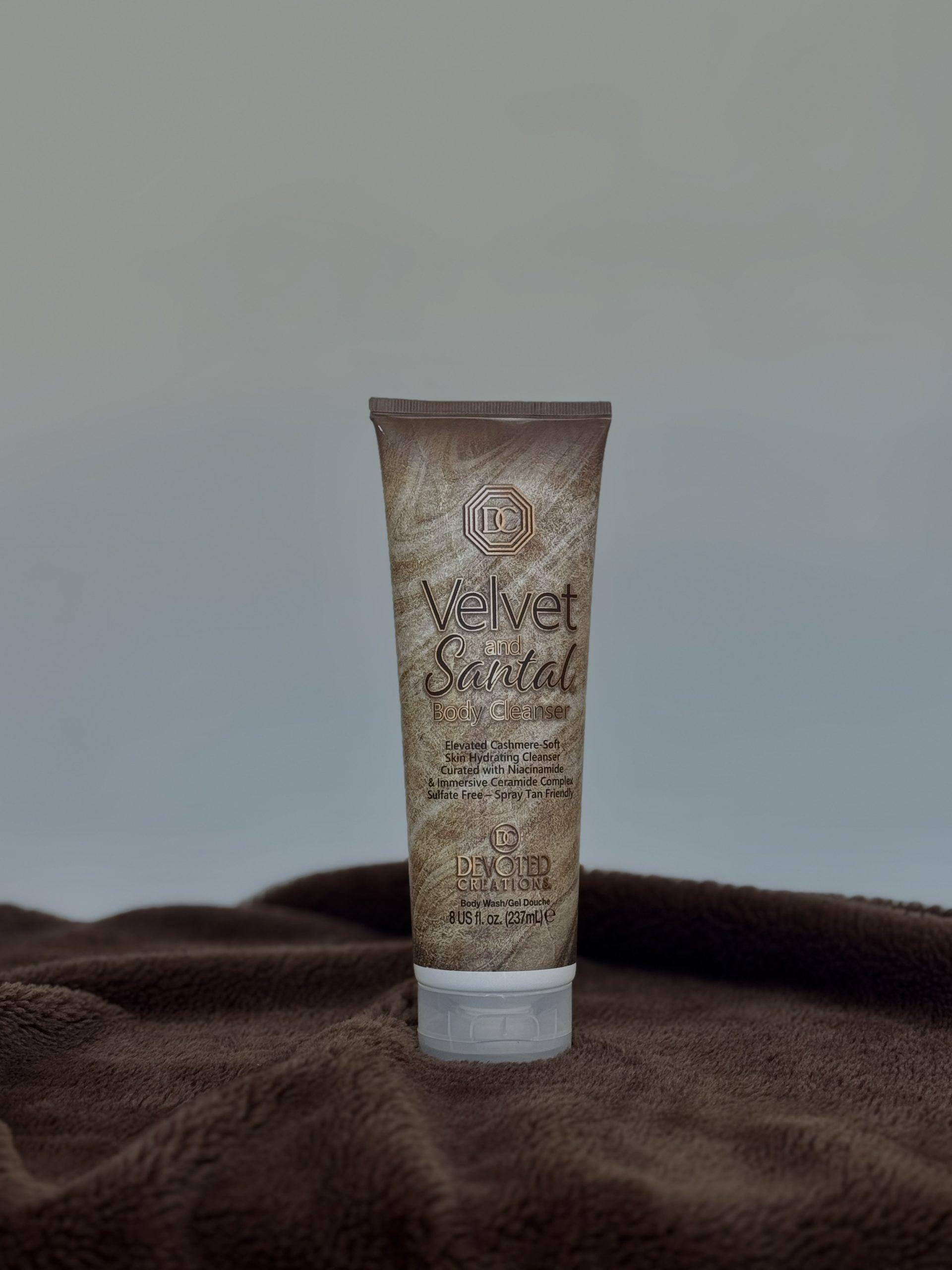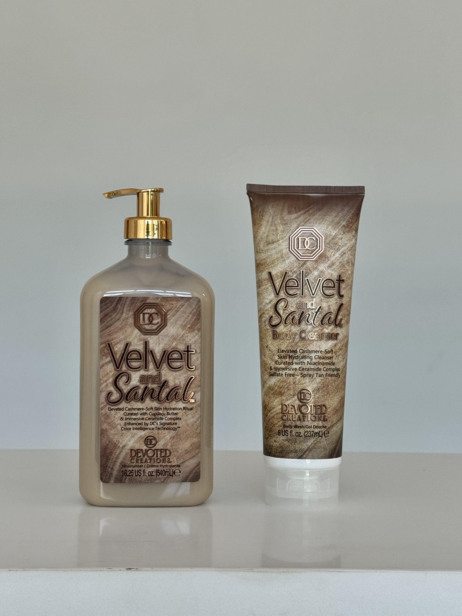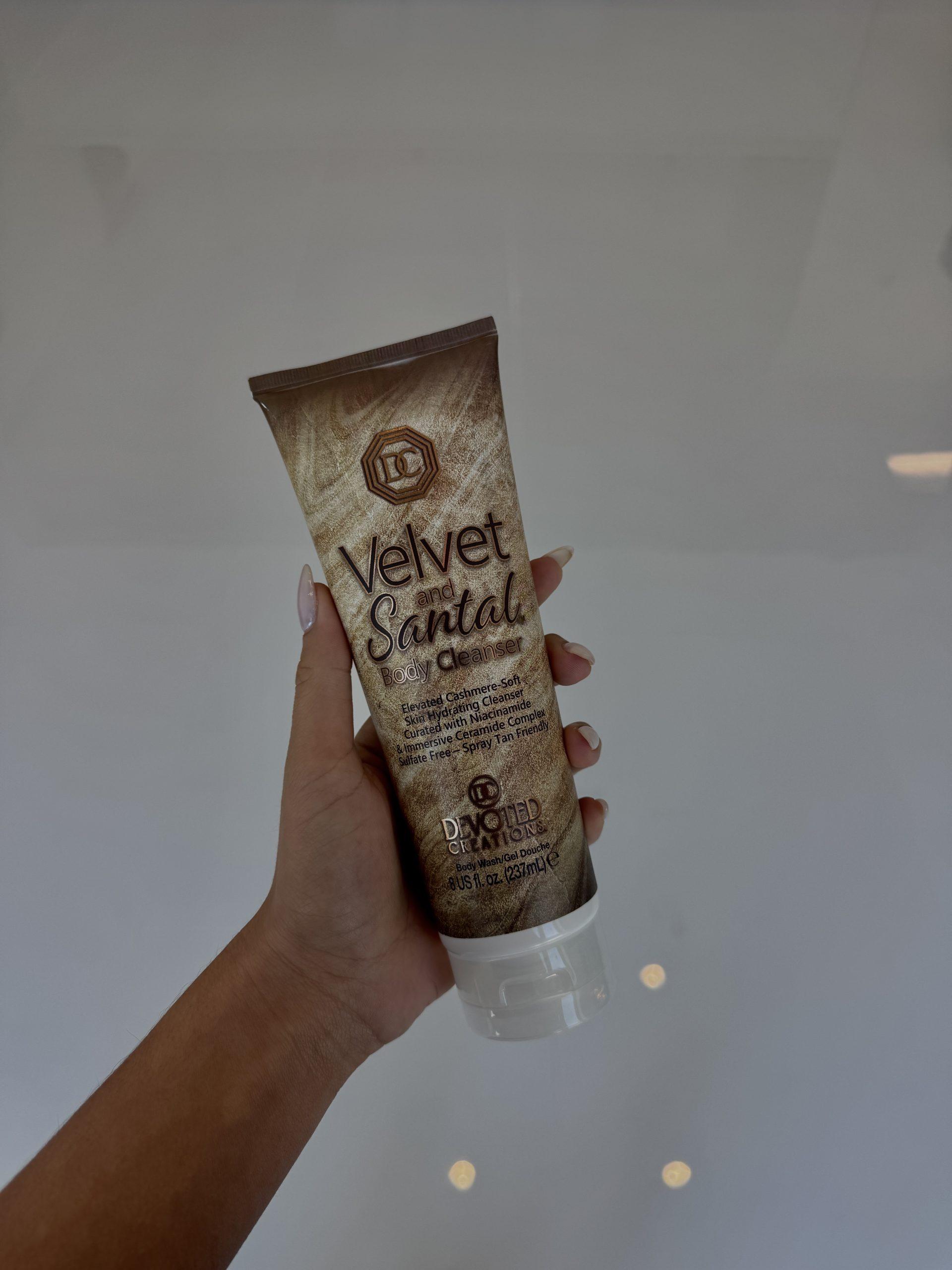 An elevated art of touch and tone, Velvet and Santal™ awakens the skin with the subtle warmth of sunlit wood and soft air. This rich, sulfate free body wash caresses the skin in a velvety lather that cleanses without compromise - removing impurities while preserving your tan’s luminous depth. Niacinamide and Snow Mushroom unveil clarity and hydration. A Ceramide Complex reinforces the skin’s natural barrier for lasting suppleness. Designed to prolong tanning results and maintain a soft, even tone, this cleanser leaves skin feeling refreshed, balanced and touchably smooth. Velvet and Santal™ Body Cleanser transforms the simple act of cleansing into a ritual of renewal, radiance, and understated luxury